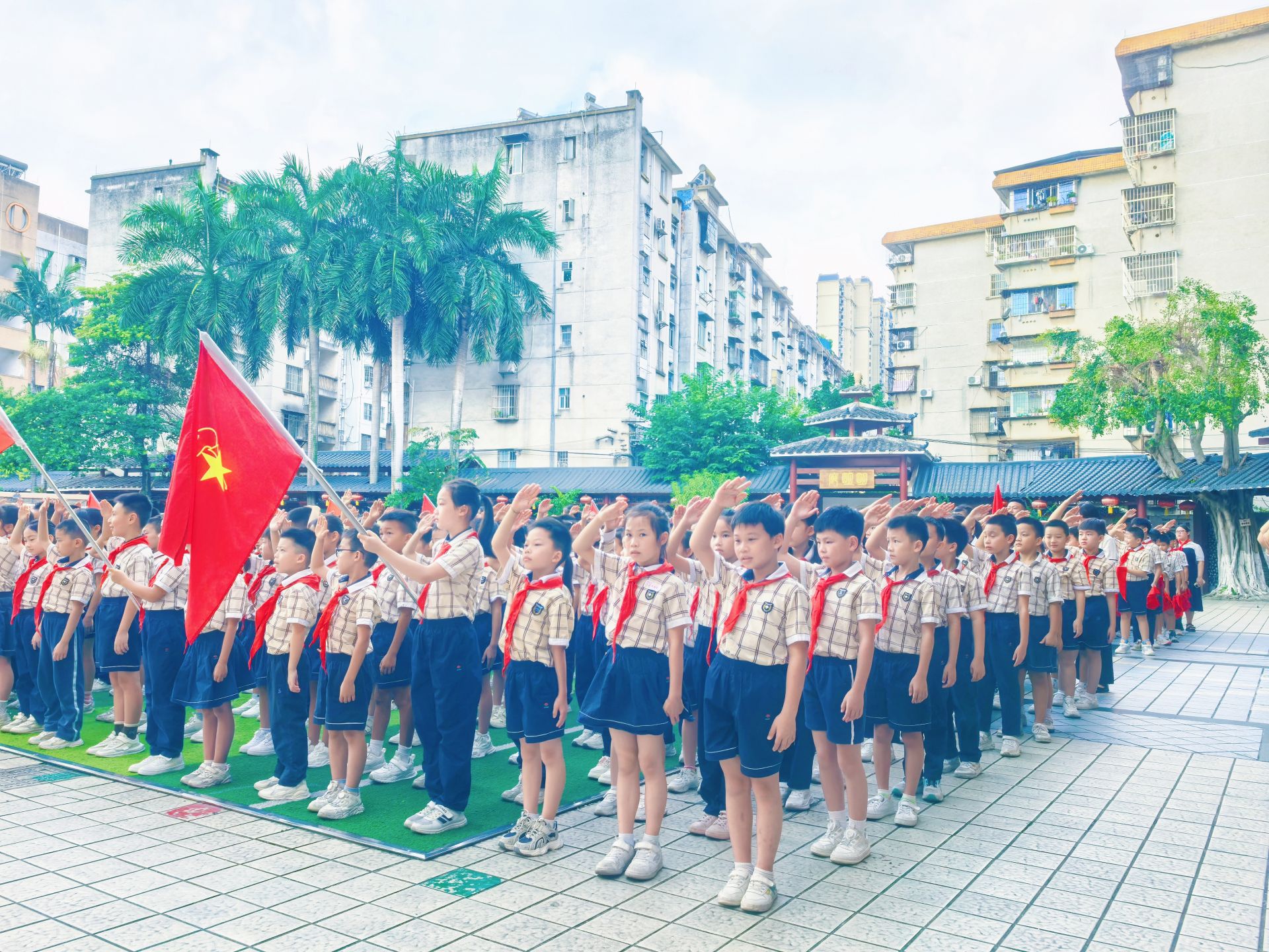 “出旗,敬礼!”伴随着铿锵的指令,队旗舒展、队礼标准、队歌嘹亮。少先队员们以坚定步伐、洪亮歌声,既展现出积极向上的精神风貌与奋进斗志,更传递出对党和祖国的无限热爱与深情祝福。
