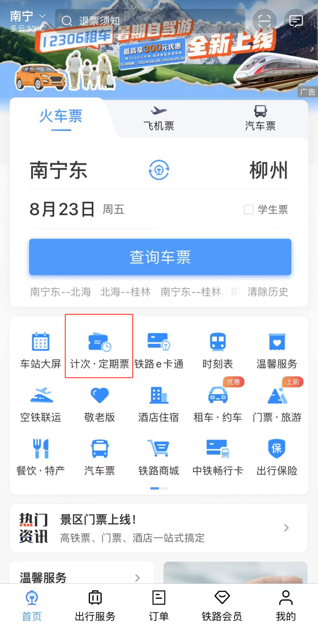 旅客可在12306网站、铁路12306App等官方渠道购买这款旅游计次票,通过席位预约和直接刷证两种方式使用。