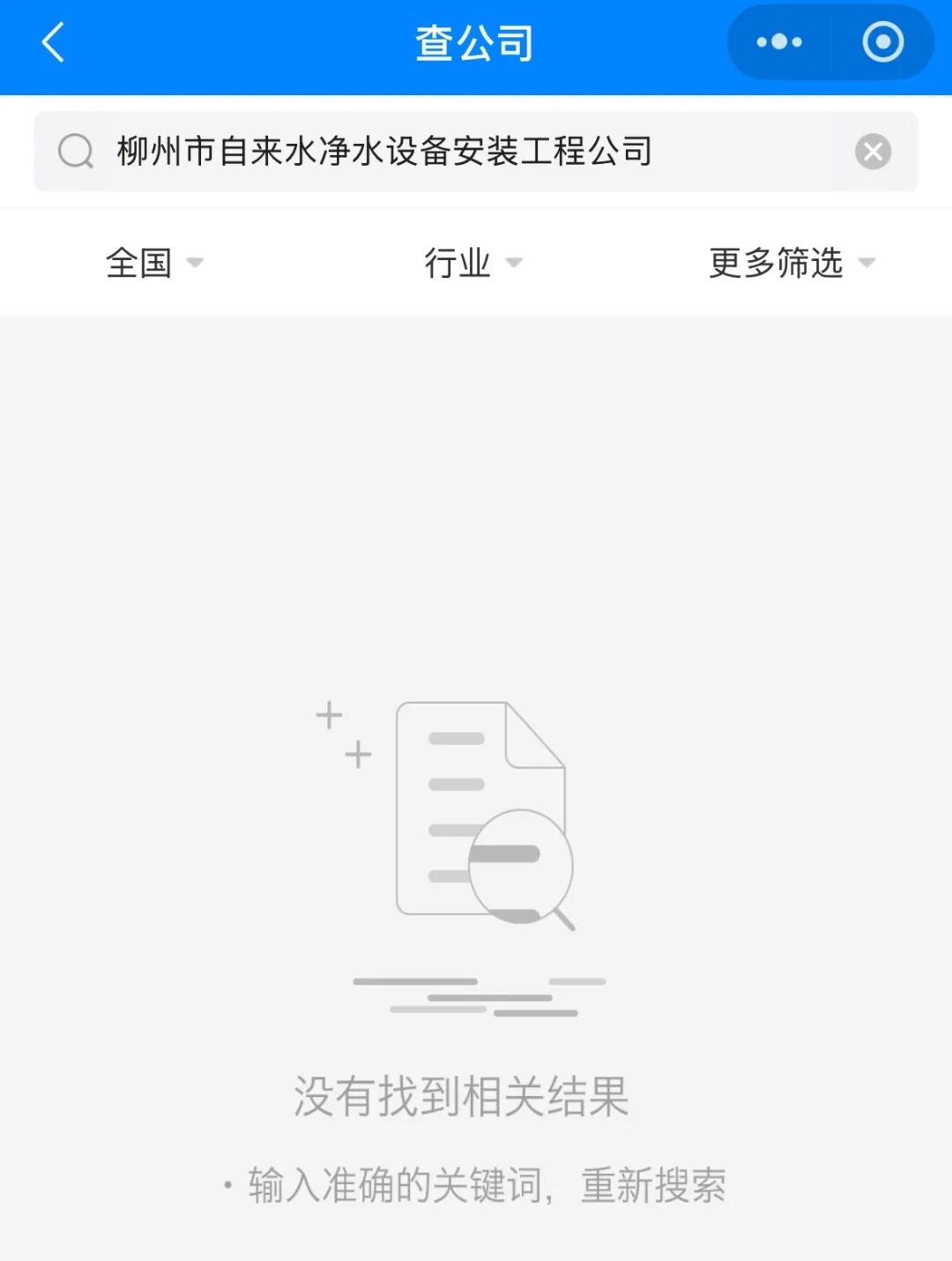 记者随后通过国家企业信用信息公示系统及“企查查”App查询,均未找到“柳州市自来水净水设备安装工程公司”的任何注册信息。