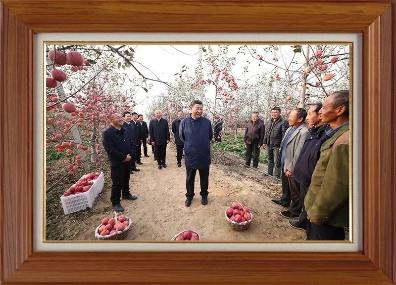 10月26日下午,习近平总书记在陕西省延安市安塞区高桥镇南沟村苹果园同老乡们亲切交流。