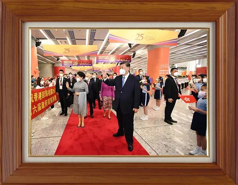 7月1日,香港迎来回归祖国25周年。6月30日下午,习近平总书记乘专列抵达香港,这是习近平和夫人彭丽媛向欢迎的人群挥手致意。