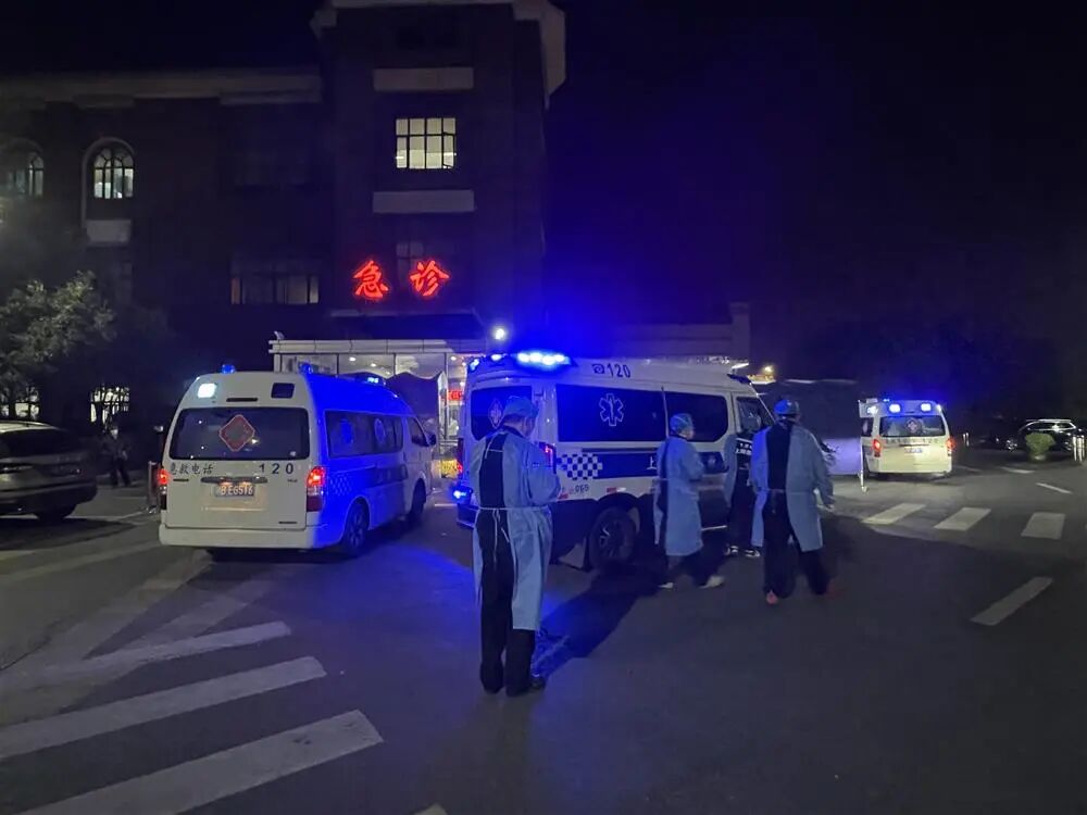 此刻,华山北院急诊室门口停着5辆救护车。大约每过10分钟左右,就有一辆救护车驶入,车辆停放几乎堵塞了一半的道路。急诊室里挤满了来看病的人,6间诊室悉数开放,叫号已到2100多号,候诊人数超过600人。