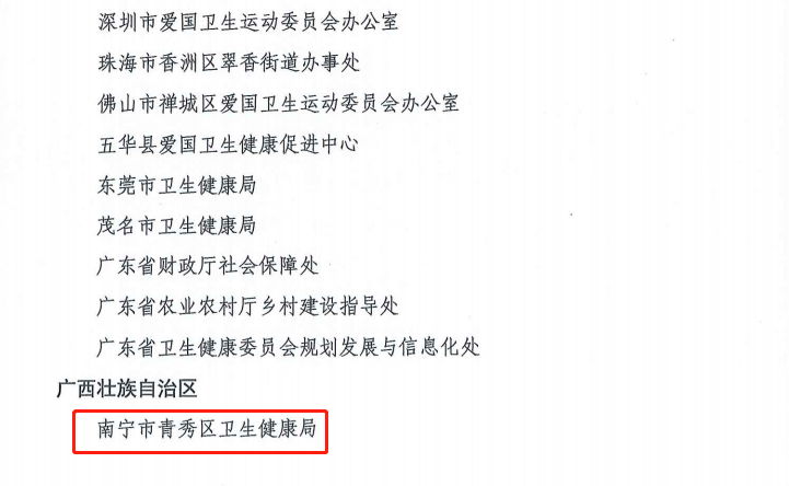 青秀区卫生健康局荣获“爱国卫生运动70周年先进集体”称号。
