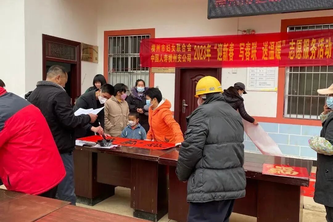 横州市妇联、中国人寿横州支公司联合开展“迎新春 写春联 送温暖”志愿服务活动,邀请了横州市青年书法家协会的2名书法家到村为群众免费手写春联。