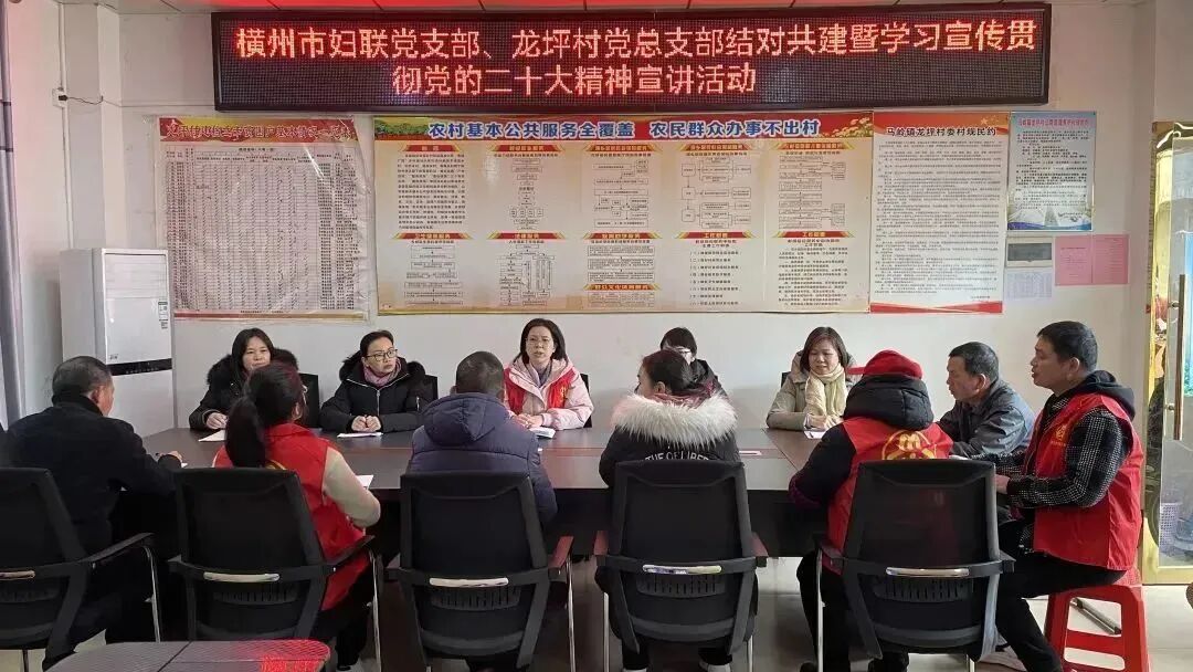 在马岭镇龙坪村,横州市妇联党支部和龙坪村党总支部开展了结对共建活动,市妇联党组书记、主席蒙娟给大家上了一场党的二十大精神专题党课。