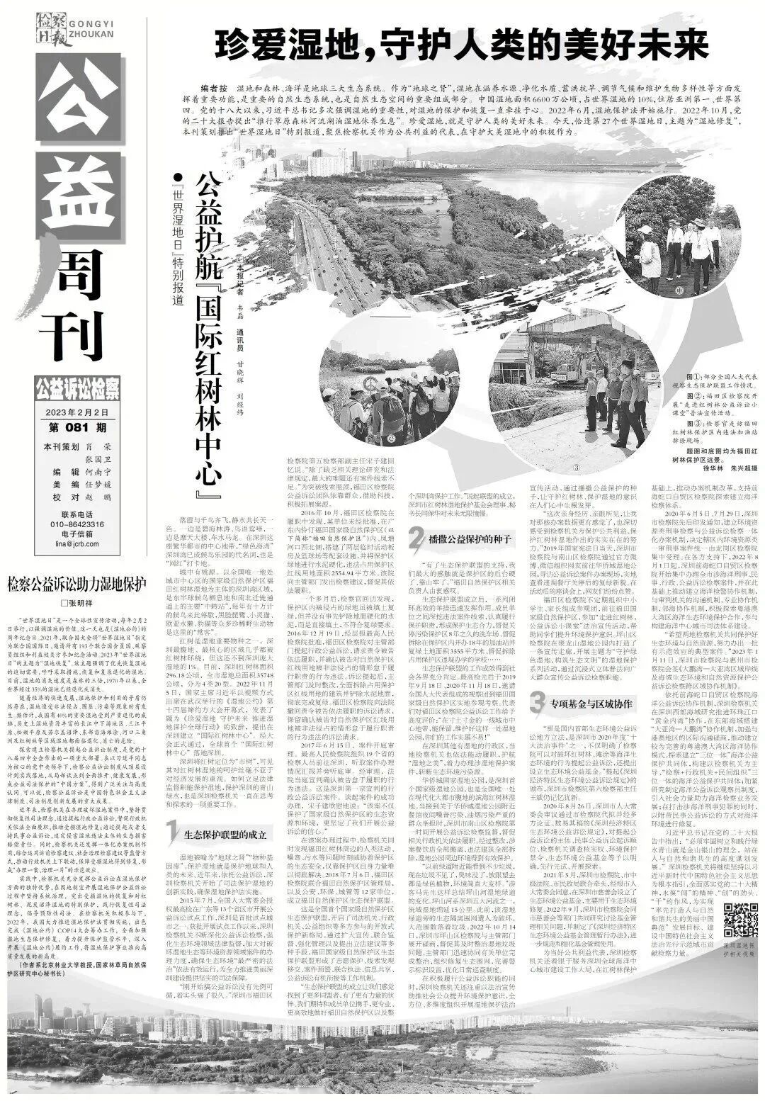 湿地被喻为“地球之肾”“物种基因库”。保护湿地就是保护地球和人类的未来。近年来,依托公益诉讼,深圳检察机关开始了司法保护湿地的创新实践,确保湿地保护法实施。