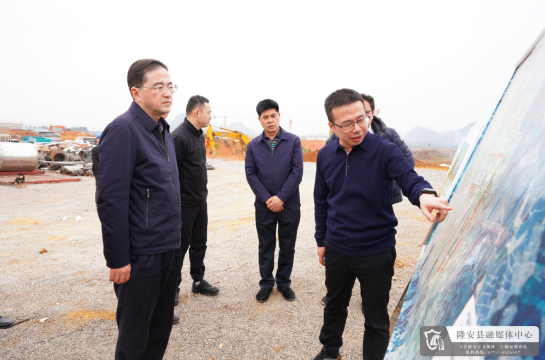 邝兵听取隆安县农产品加工示范园一期和二期建设项目工作推进情况汇报。 陈建倬 摄