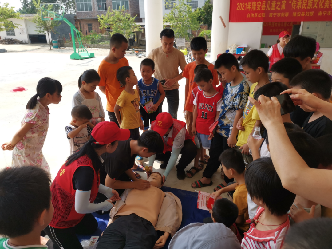 隆安县妇联组织南宁市家庭教育协会专业志愿服务团队深入陇割村等开展儿童之家志愿服务活动之“应急救护”培训活动。