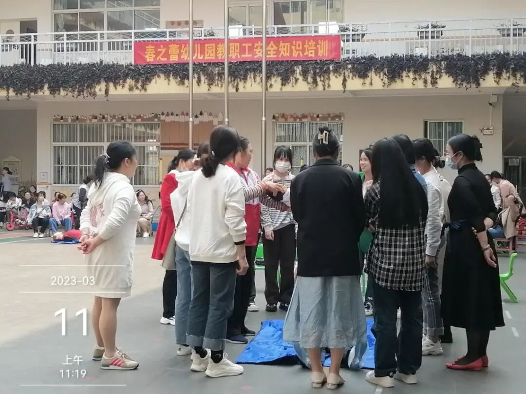 为了加强幼儿园教职工的安全防范意识,切实提高对幼儿突发状况处理能力,保障幼儿在安全、健康的园所环境下成长。2023年3月11日上午,江南区红十字会在二桥西社区春之蕾幼儿园启动南宁市万人应急救护培训活动,对约300名教职工进行应急救护知识及技能培训。