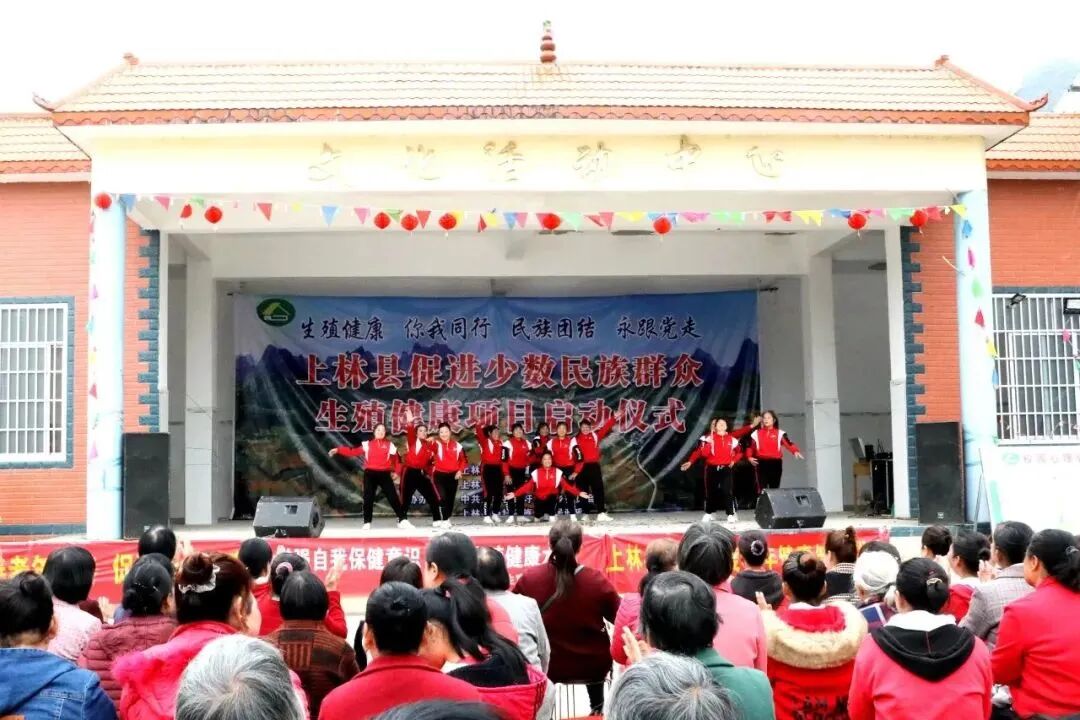 3月7日,上林县促进少数民族群众生殖健康项目启动仪式暨“三八妇女节”游园活动在镇圩瑶族乡镇马社区篮球场举行。启动仪式上,镇圩瑶族乡瑶山歌艺术团及各村文艺代表队依次上台表演,演员们用动听的歌声、精美的舞蹈、有趣的小品,让观众们送上了一阵阵掌声。节目期间还有抛绣球互动环节,给群众赠送礼品,群众参与热情高涨,现场气氛十分活跃。现场设立咨询台,开展有关防艾、防性病等相关问题的咨询活动,同时发放卫生计生相关政策宣传单,向群众广泛宣传生殖保健等常识,提升群众对计生知识的知晓率,此外还开展丰富多彩的三八妇女节游园活动,现场热闹非凡。