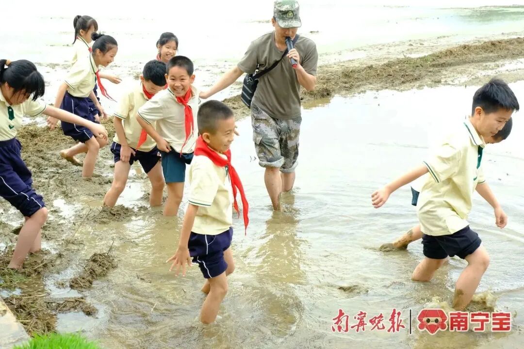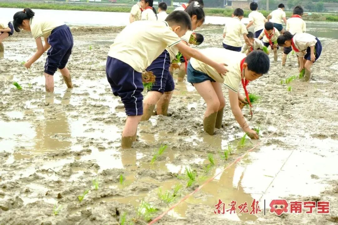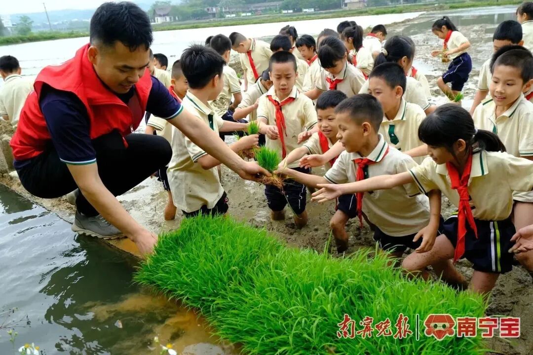一把插秧趁手青,田间地头知农辛。3月24日,民主路小学观澜溪谷校区200余名小朋友来到位于青秀区长塘镇的中国—东盟稻作文化园,走进田间地头,下田插秧摸鱼,体验劳作乐趣,学习农耕知识,感受科技魅力。实践获真知,小朋友们通过研学体验劳动美,深知一粥一饭当思来之不易,同时拓宽视野,近距离领略插上科技翅膀的智慧农业魅力。