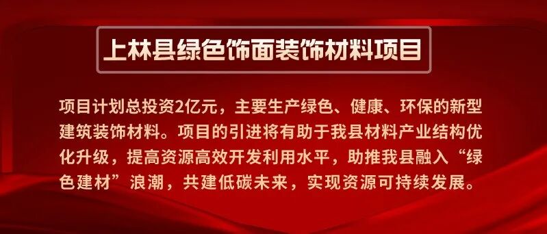 当前,上林县正深入学习贯彻党的二十大精神,全面贯彻落实习近平总书记对广西“五个更大”重要要求和系列重要指示精神,按照自治区党委、政府,南宁市委、市政府的工作部署,大力培育现代产业,持续扩大有效投资,不断优化营商环境,经济社会发展取得了新成效新突破。此次集中签约项目,扩投资促产业稳增长,有力推动上林经济社会高质量发展。