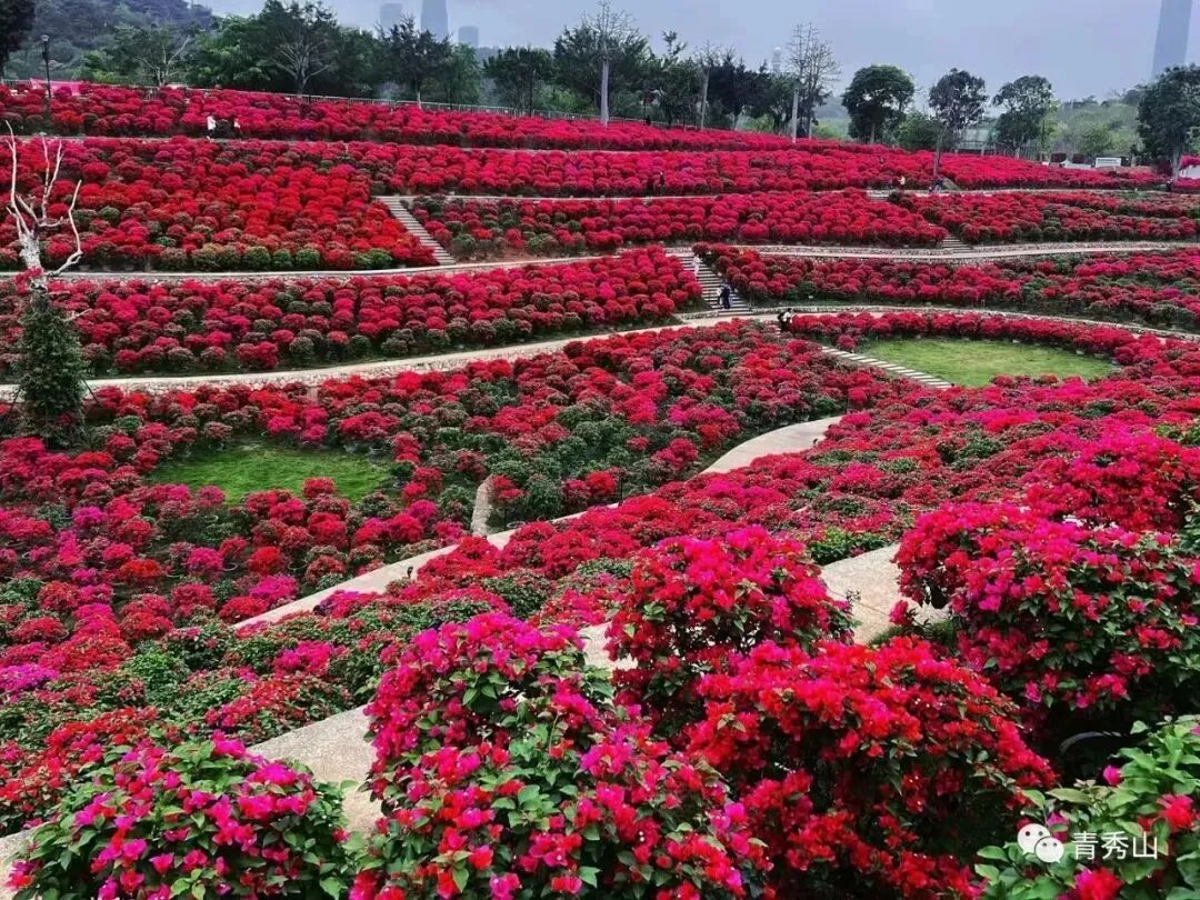 青秀山风景区叶子花谷内“红色花海”在绽放。(青秀山 供图)
