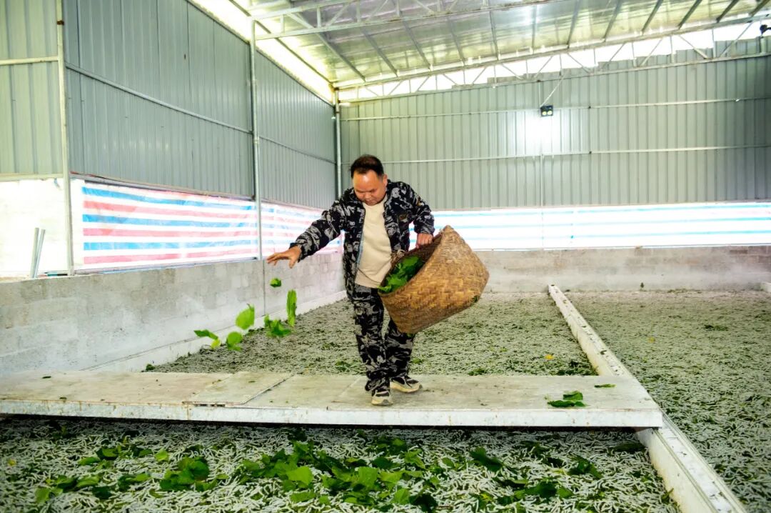 龙贵村脱贫户蓝志高高兴地说:“我是我们村第一批养蚕户,种有20亩桑树,有蚕种3万只,预计能卖1万多块钱,今年市场行情还不错。”