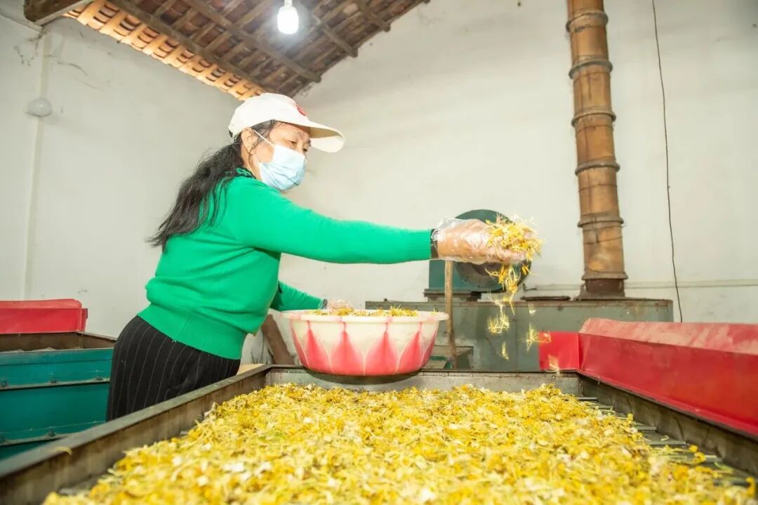 “今年的金银花长得不错,收成也可以,我们是在前几天完成采摘,现在正在晒茶,预计花蕾价格能卖到120块钱一斤,花朵100块钱一斤,已经有客户提前跟我们预定了,等我们晒好了就能发货。”秀林金银花加工厂负责人韦秀林说。