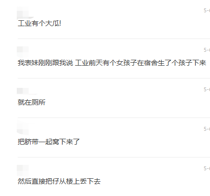 网传消息表示“5月6日广西工业职业技术学院女大学生在宿舍产子后,将婴儿连同脐带丢到楼下”并附有图片。