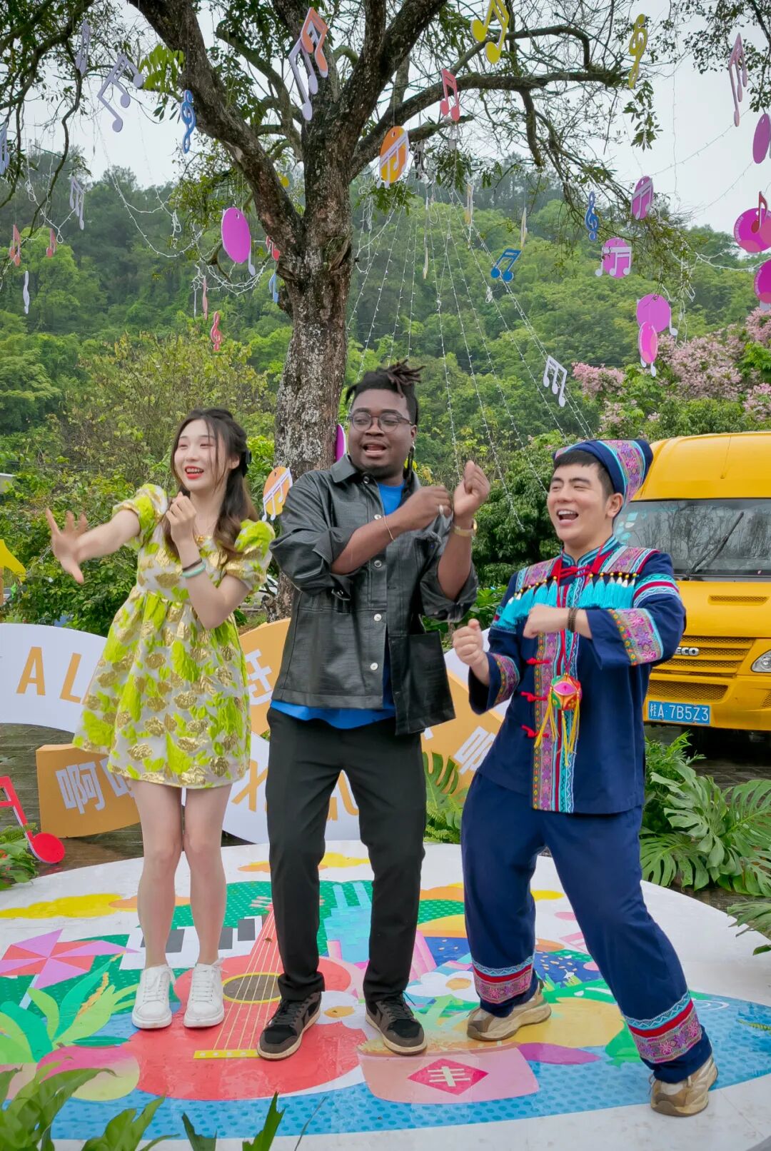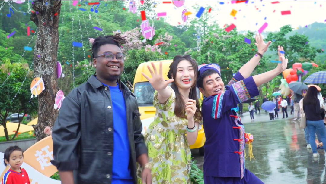 受市集热闹气氛感染,现场的外国友人、网红达人和民族小伙异口同声唱起“啊哩哩”。