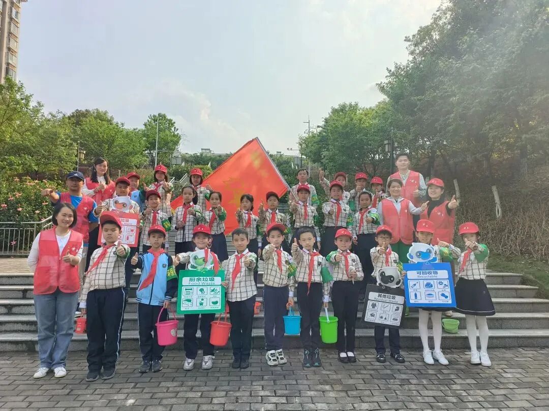 在垃圾分类志愿服务活动中,小小志愿者们热情高涨,家长们积极支持配合,“志愿红”成为越秀路上一道靓丽的风景线。通过宣传让一个学生带动一个家庭、让一个家庭带动一个社区、让一个社区带动整个社会,引导更多居民群众践行绿色环保的生活理念。