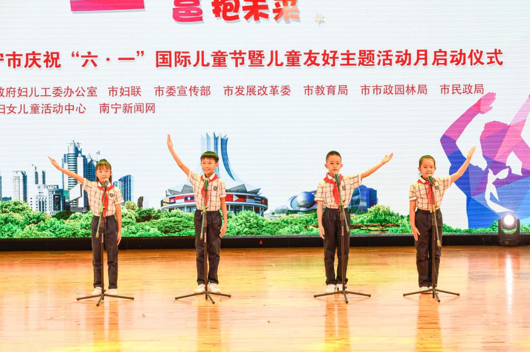 儿童是国家的希望,城市的未来。5月31日上午,由南宁市政府妇儿工委办公室、南宁市市委宣传部、南宁市发展改革委、南宁市教育局、南宁市民政局、南宁市政园林局、南宁市妇联主办的“‘童’创友好 ‘邕’抱未来”2023年南宁市庆祝“六一”国际儿童节暨儿童友好主题活动月启动仪式在南宁市妇女儿童活动中心举行。相关单位领导、南宁市少年儿童代表共200人参加了活动。
