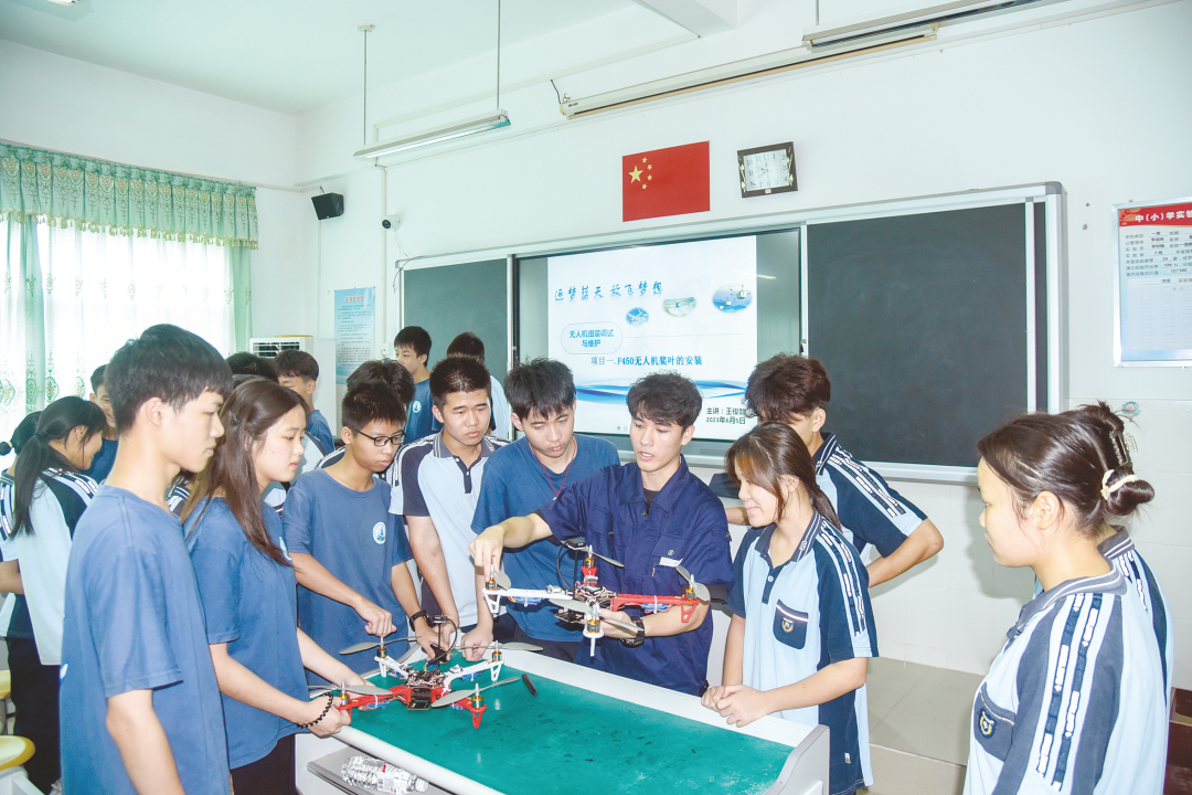 在职业教育政策宣讲环节,广西教育研究院职业教育研究所主要负责人解读职业教育政策;在职业体验课程环节,中职教师王俊智、贾旭分别给长塘学子带来《无人机应用》和《壮锦郁金香花》课程,让大家感受中职课程的精彩;在职业教育特色专业家长开放日活动环节,南宁市第一、三、四、六职业技术学校及广西南宁技师学院等8所中职学校的师生来到长塘中学,展示各校特色专业,让大家感受职业教育的魅力,在全社会营造关心支持普职融通的良好氛围。