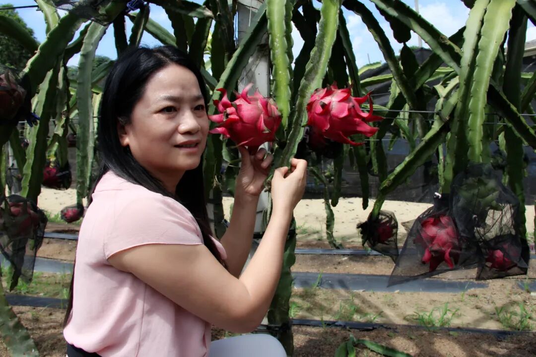 火龙果产业发展了,产量大了,但价格却不断下降,销售成了个难题。2015年,她开始探索线上火龙果销售事宜。经过一年的努力,振企公司产、销两旺。有了经验,她开始着手推进火龙果行业的销售。一是整合产业资源,成立南宁火龙果产销联盟(南宁市火龙果产业协会前身),建立流通标准,引进客商,开展火龙果推介销售工作。二是成立供应链公司,把火龙果的生产、加工、供应、销售、物流融入进火龙果产业,促进火龙果的流通。三、是搭建线上销售平台、店铺,在销售自身产品的同时帮助同行销售产品。四是总结线上销售的经验,培训有意愿开展网上销售的人员,拓宽思路,增加销售渠道,增加收益。上述措施的实施扩大了区域火龙果的影响力,产品美誉度、认知度不断提升,销售价格上升,行业发展良好。