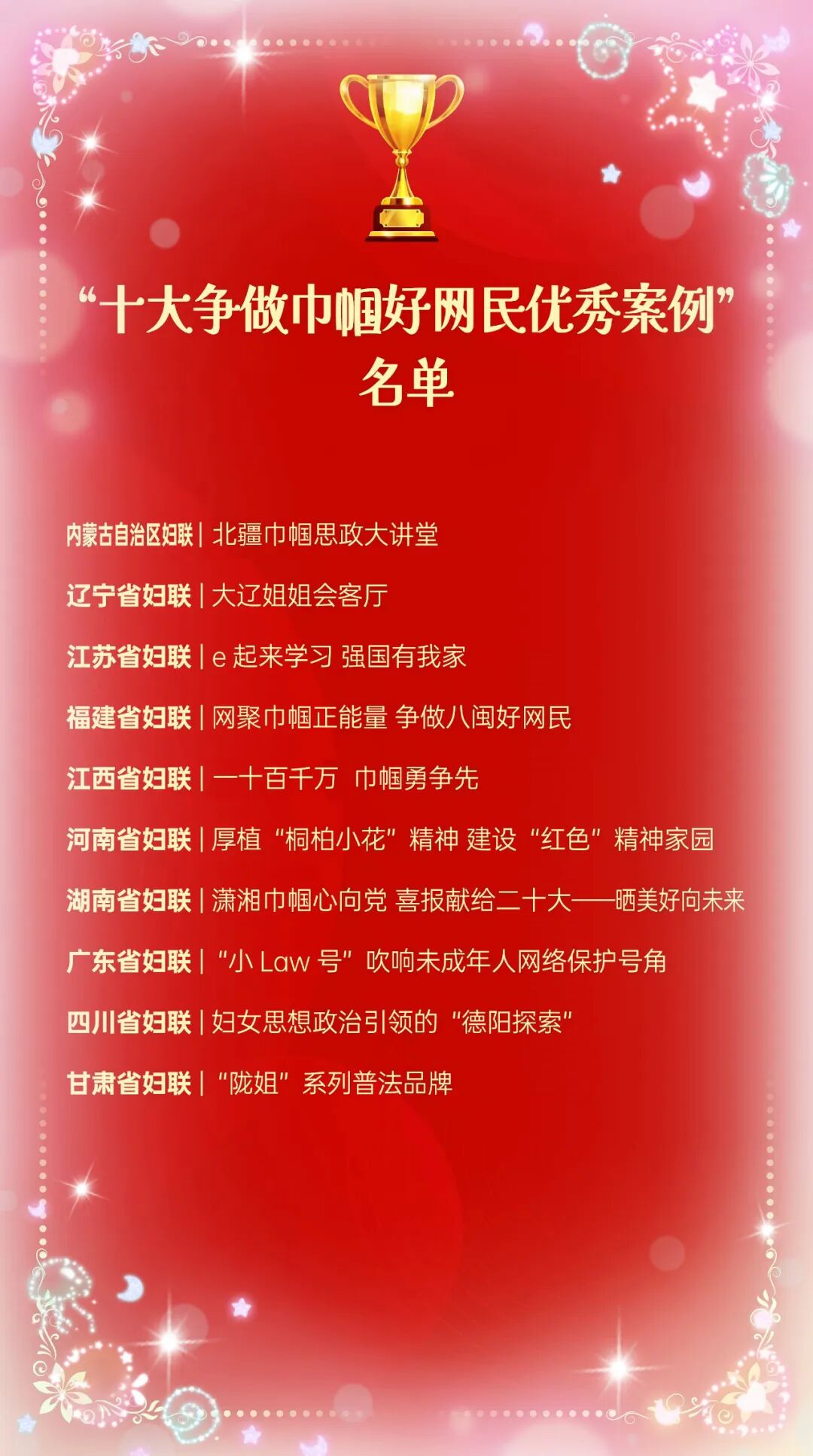 第三届“百个巾帼好网民故事”暨“十大争做巾帼好网民优秀案例”全名单