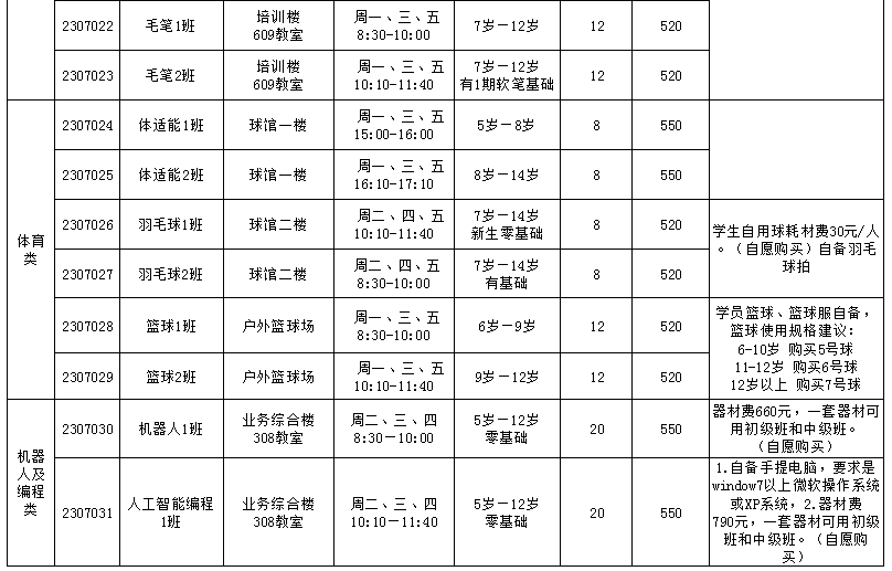 2023年暑期开课时间:2023年7月3日起。(各班具体上课时间,请点击报名详情查看报名信息,上课前不再另行通知。)