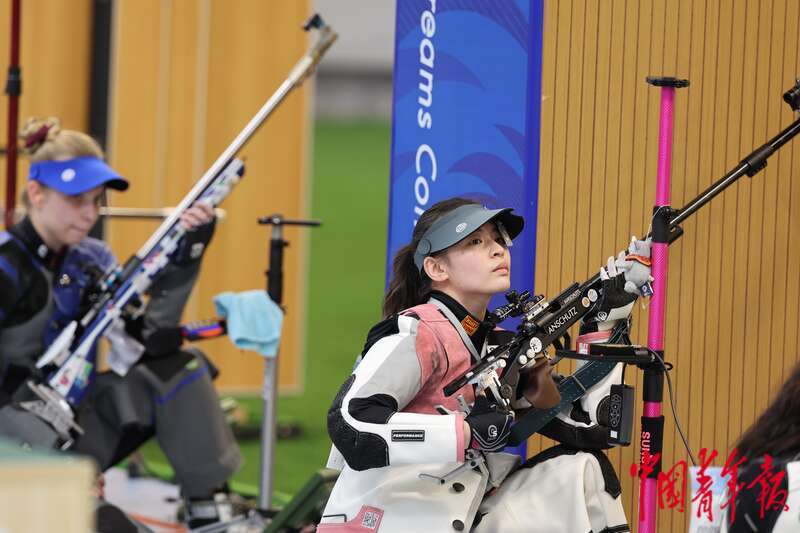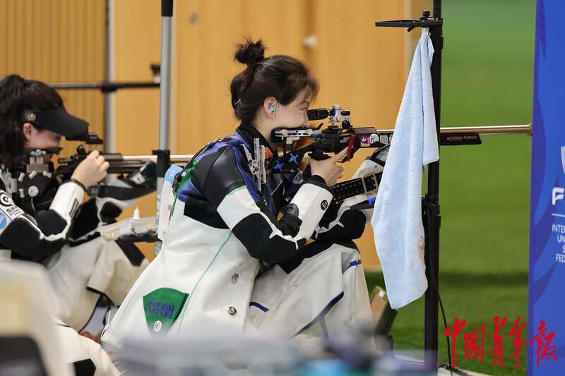 8月1日,四川成都,成都大运会女子50米步枪三种姿势团体决赛上,中国选手邢航在比赛中。当日,在成都举行的第31届世界大学生夏季运动会射击项目女子50米步枪三种姿势团体决赛中,由史梦瑶、王泽儒和邢航组成的中国队以3525环的总成绩获得亚军。中青报·中青网记者 赵迪/摄