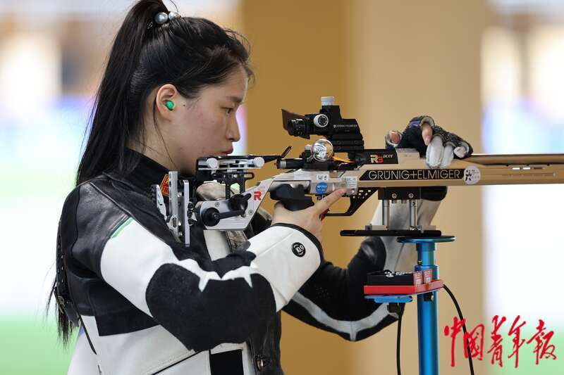 8月1日,四川成都,成都大运会女子50米步枪三种姿势团体决赛上,中国选手史梦瑶在比赛中。中青报·中青网记者 赵迪/摄
