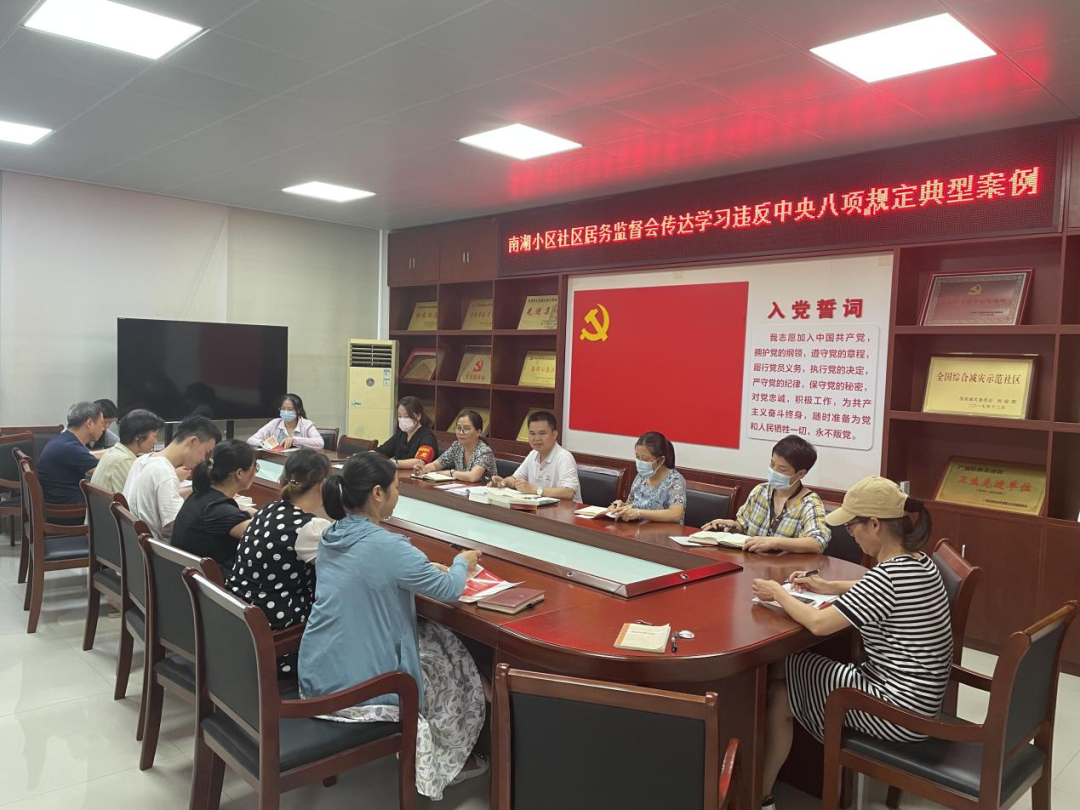 南湖小区社区居务监督会传达学习违反中央八项规定典型案例。