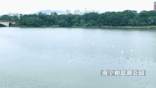 相思湖公园里,鸟儿飞翔