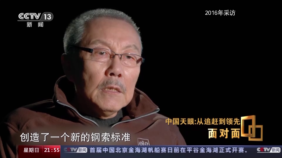 南仁东:我们现在所用的钢索应力幅可以达到550,疲劳周期可以达到200万,原来没有这样强度的东西,FAST推进中国的企业创造了一个新的钢索标准,不是专利,你懂吗?是标准。