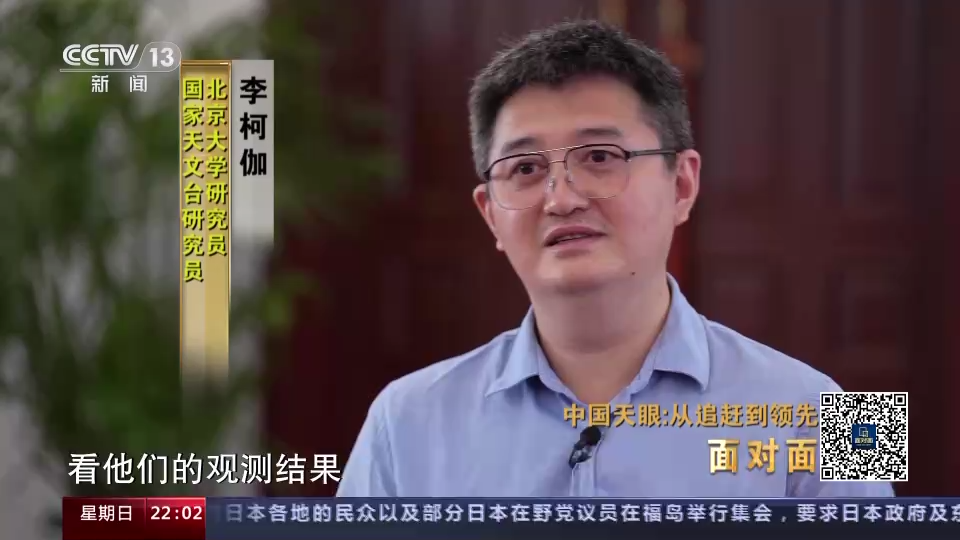 记者:李柯伽他们团队说,因为天眼很敏感,很好用,所以可以让他们在短暂的三年半不到的时间里面,就能够积累到可能别的团队用十几年,甚至二十年,所积累下来的这个数据。