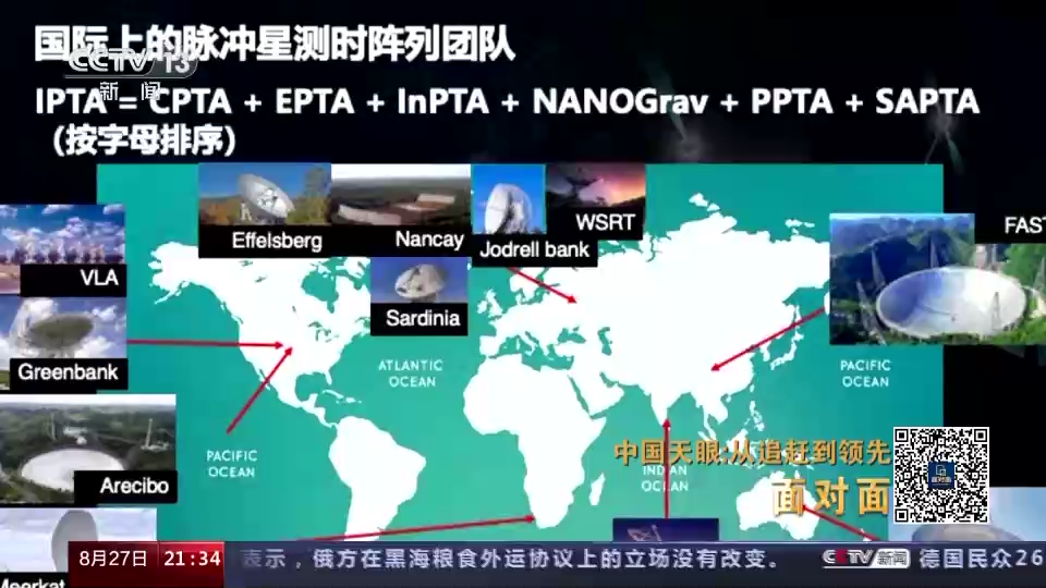 李柯伽:这个事情其实是挺偶然的事情。我们项目大概是从2019年开始进行观测,那么到了去年,我们需要整理一下这些数据,这个时候美国NANOGrav正在分析他们十五年的数据,欧洲EPTA在分析他们十八年的数据,澳大利亚PPTA他们有更长的数据。我们是今年3月份的时候,向国际脉冲星测时阵列联盟,我们就意识到国际上其他几个团队也会在那个时间点附近发表他们的结果,那就干脆约好同一个时间这个文章出来给大家看到就完了。
