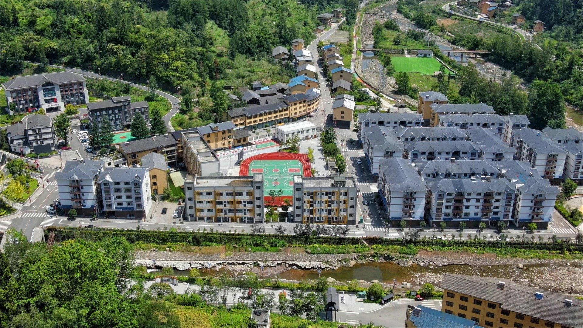 青山脚下操场崭新,综合楼、实验室、图书馆一应俱全,塑胶操场、篮球场、足球场跃动着孩子们奔跑的身影。