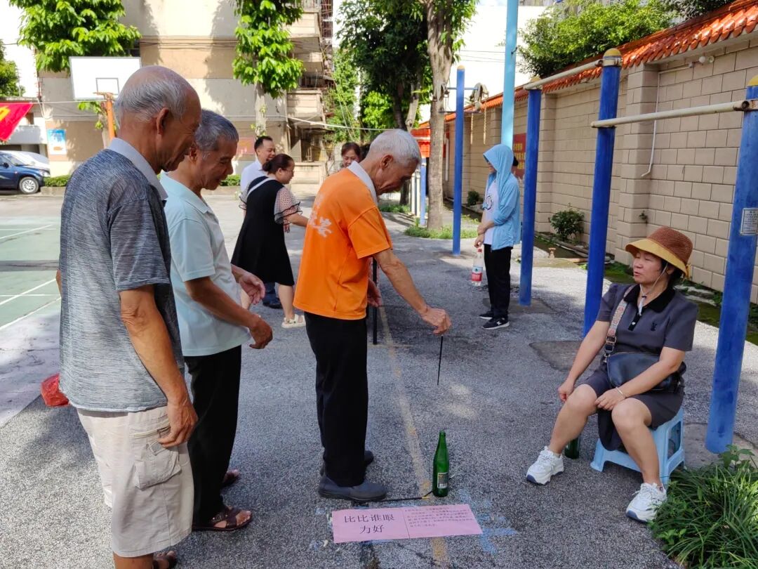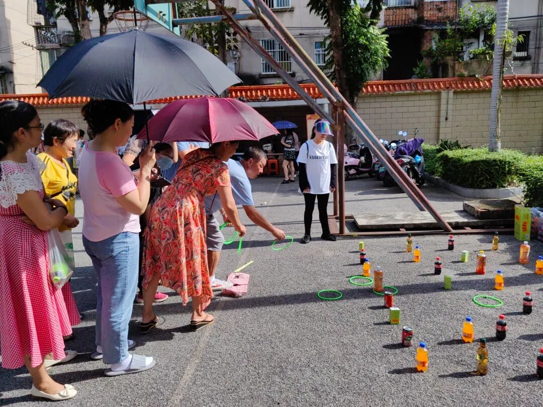 吹乒乓球、套圈、夹玻璃珠、定点投篮......北湖街道北湖东社区游园活动吸引不少周边居民参与,每个游戏区前面都排起长队。男女老少撸起袖子各显神通,欢笑声此起彼伏。