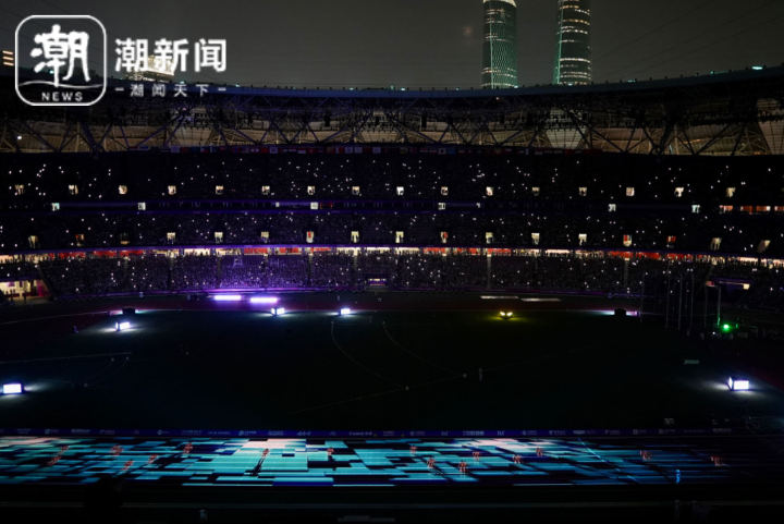 9月29日,亚运会田径比赛首日,“大莲花”再现裸眼3D震撼表演。图源潮新闻