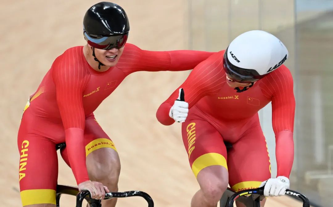 两人在冲刺时携手共庆