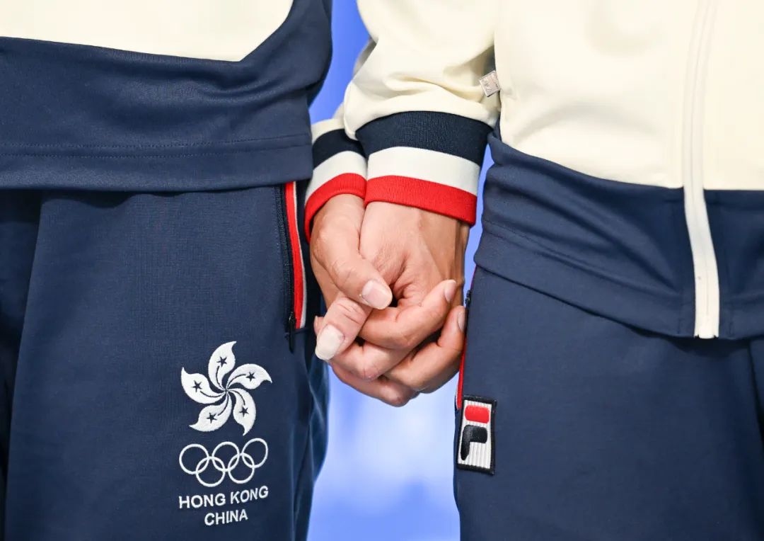 两名中国香港队选手双手紧握
