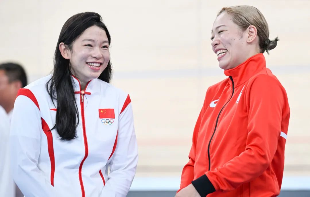 日本选手佐藤水菜(右)和中国选手王丽娟聊天