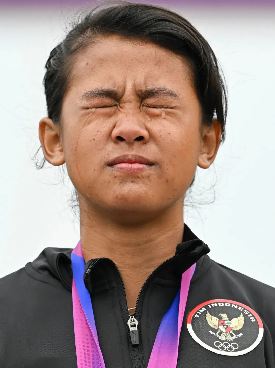 印度尼西亚选手阿迈利娅·努尔·西法在颁奖仪式上落泪
