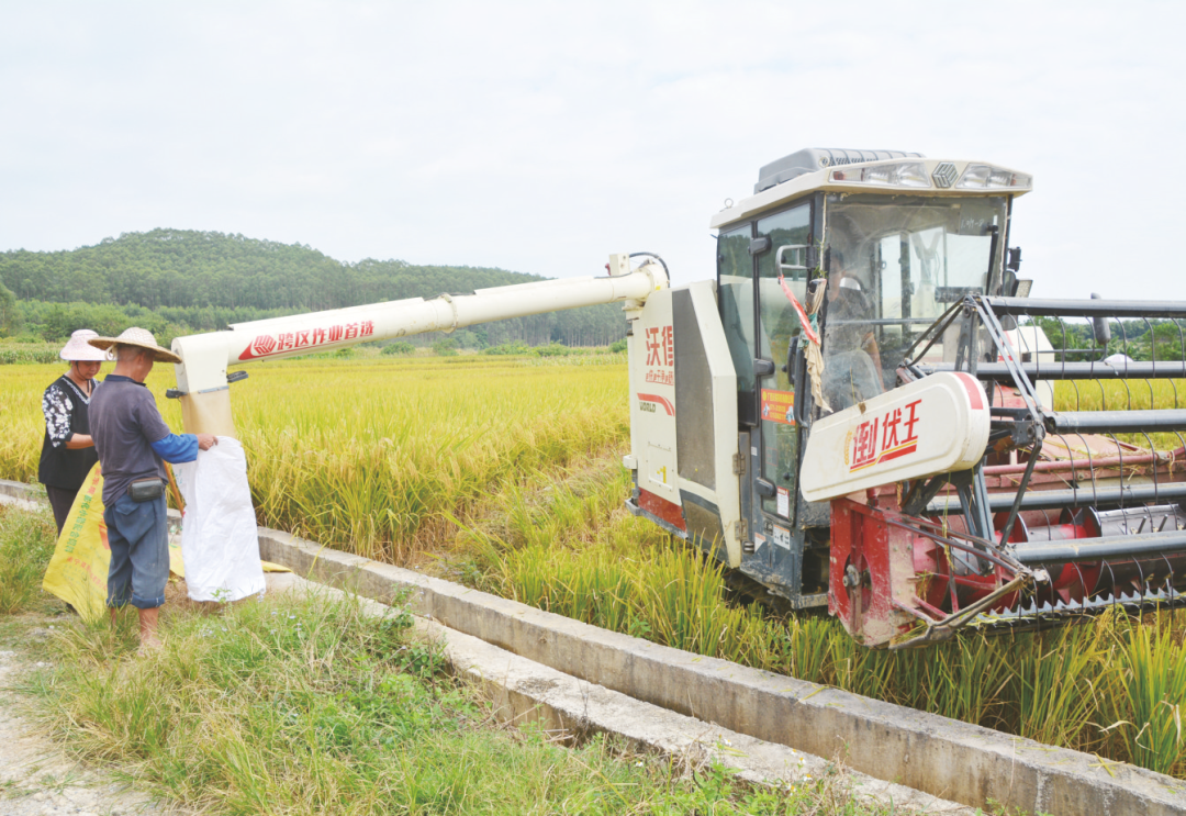 “今年我们这里收成较好,每亩产量900~1000斤,种的主要是香米。基地从种植、管护到收割先后带动了2000多名村民在基地种植水稻,预计今年稻谷总产量20多万斤。”刘圩镇麓阳村委会相关负责人介绍,村里利用当地优良的土质,帮助农户统一规划种植西瓜、香芋、水稻三个主导特色农作物,形成了自己的口碑。因品质好、口感软,大米吃起来很香,基本上都是订单售卖,主要销往南宁周边一些超市,订购占一半左右。