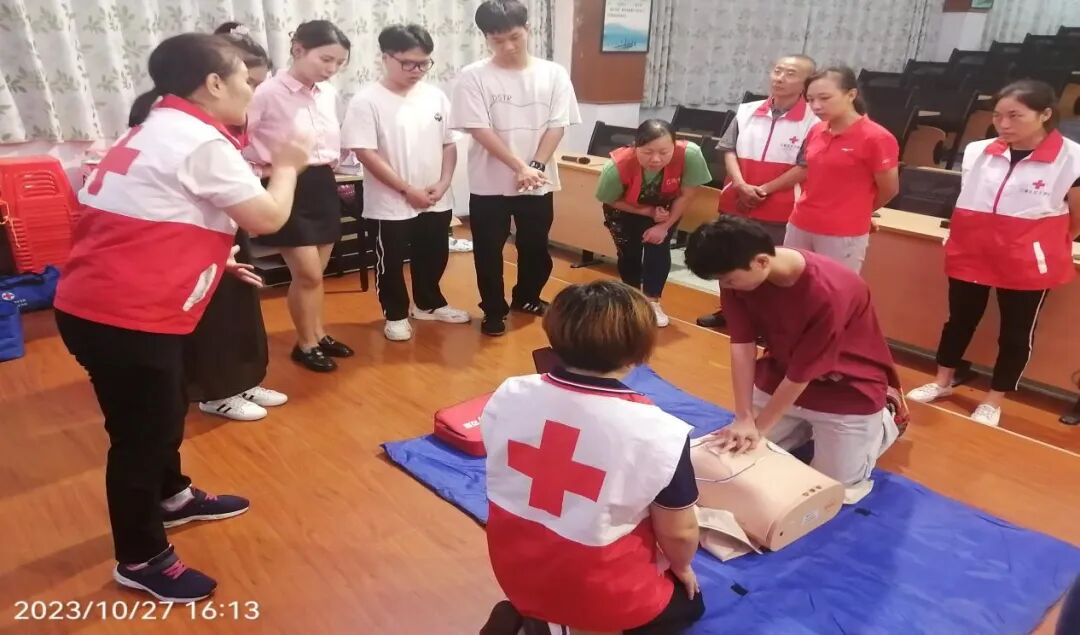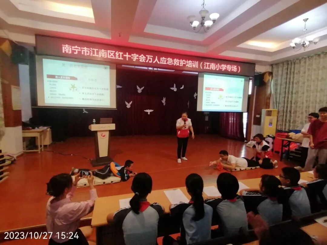 2023年10月27日,南宁市江南区红十字会走进江南区江南小学开展校园应急救护培训活动。共有约100名师生参加培训。