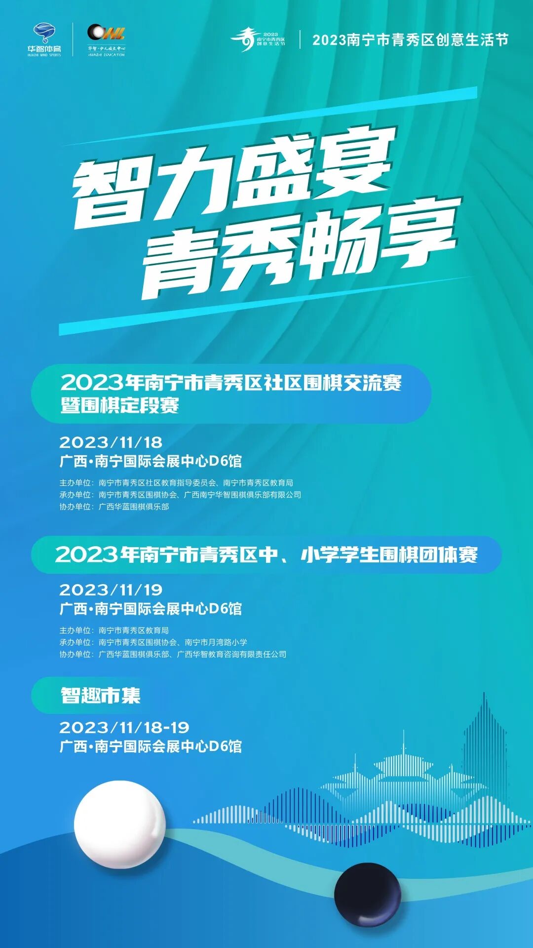 “智力运动嘉年华”将以围棋项目为核心主题,举办2023青秀区智力运动嘉年华社区围棋大赛、2023年南宁市青秀区中小学学生围棋团体赛、智力运动游园等多项丰富多彩的活动,吸引来自全国各地千人以上棋牌运动员、爱好者参与,进一步展示青秀区 “全国围棋之乡”风采,增强青秀区智力运动氛围。