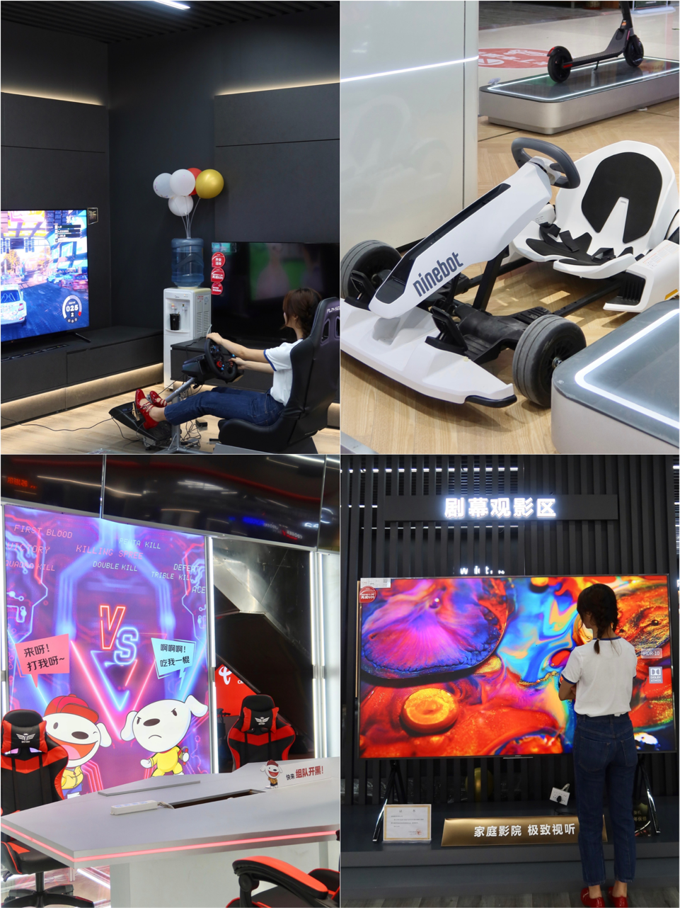 迈入门店一楼,两侧有序整齐地分布着的各类商品映入眼帘,该层以“潮玩空间”为主题,不但有手机、电脑、相机等数码产品,也有厨房小家电、美妆个护等相关生活电器。记者迫不及待上手体验了卡丁车、PS5等游戏产品,互动性和趣味性十足。影音体验厅内置有柔软沙发和巨幕投影,场景化的产品布局令记者印象深刻,高画质、大英寸的影像设备更是让人身临其境,带来丰富的观影快感。
