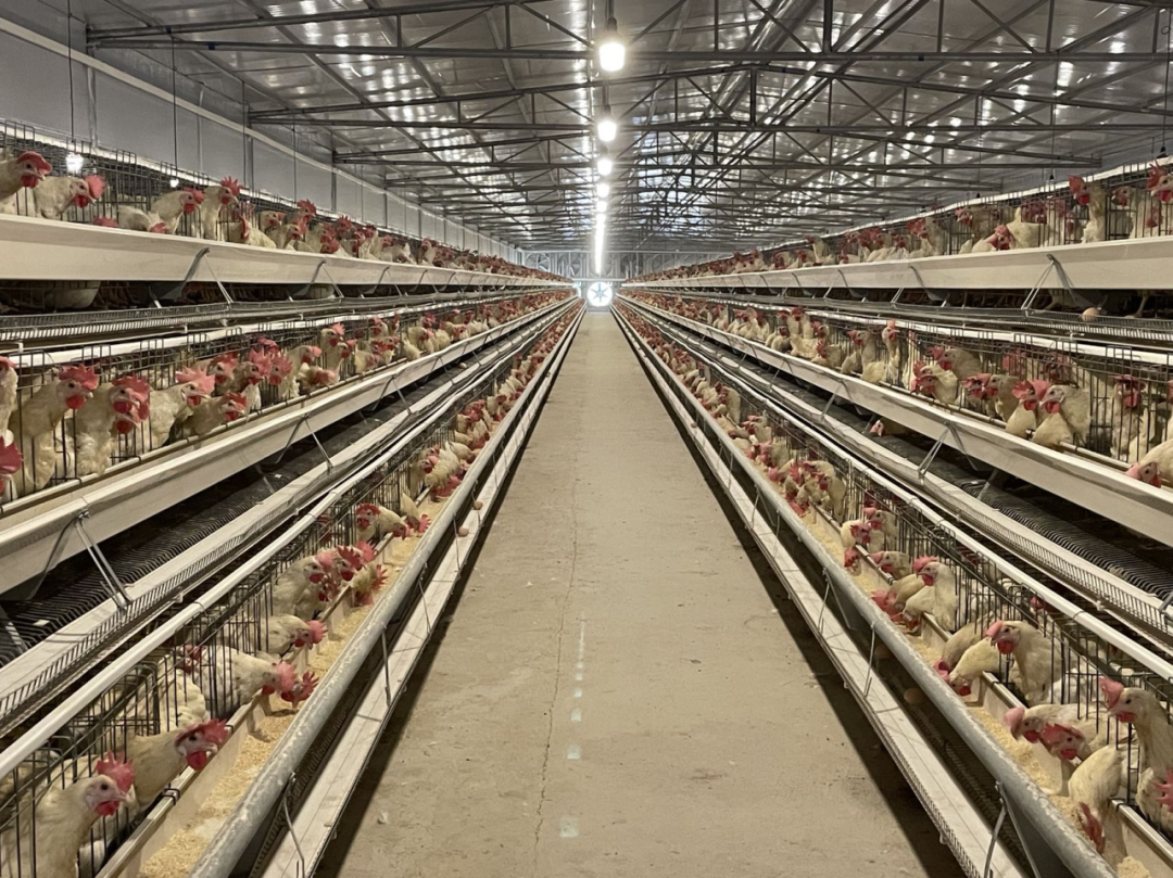 位于伶俐镇的阳永蛋鸡标准化生态养殖基地,配备自动化喂料、饮水、粪污收集、通风保温系统等。廖宁 摄