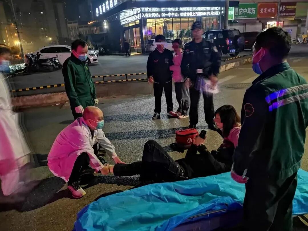 1月1日凌晨0时30分,新阳派出所民警工作返回单位途中,发现一名受伤男子躺在马路上,便立即下车查看男子伤情,经询问得知该男子骑自行车时因车速过快摔倒,疑似腿摔断了。民警立马拨打120急救电话,同时为了保证道路顺畅避免发生二次交通事故,他们当起了临时“交警”疏导现场交通,待救护车到达后,协助医护人员将伤者送医救治。