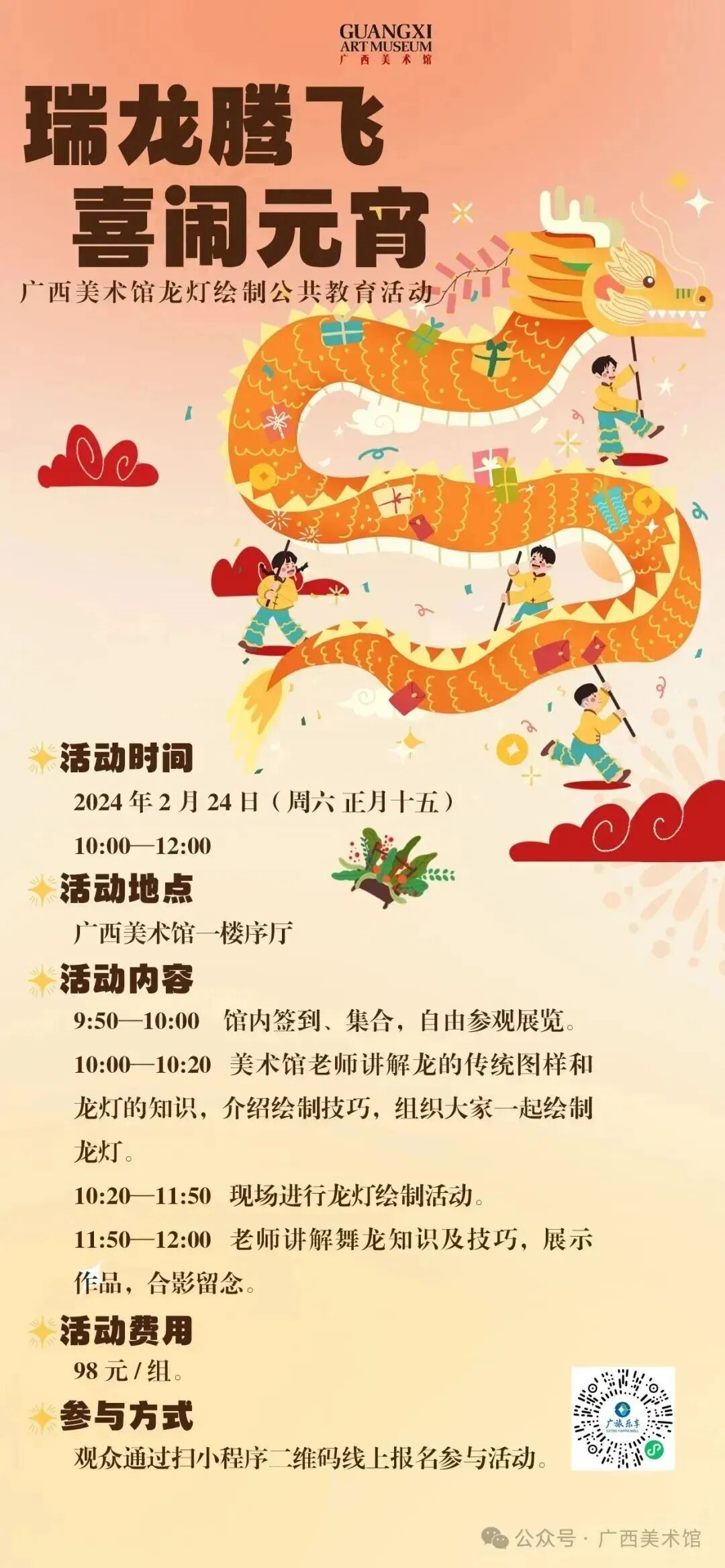 此次活动以艺术结合生肖文化,邀请观众共绘龙灯,提升大众对传统文化的理解和热爱,吸引更多人走进美术馆,吸引更多人走进美术馆,领略艺术魅力,亲身感受和体验中国传统节日中的文化内涵与美好寓意。