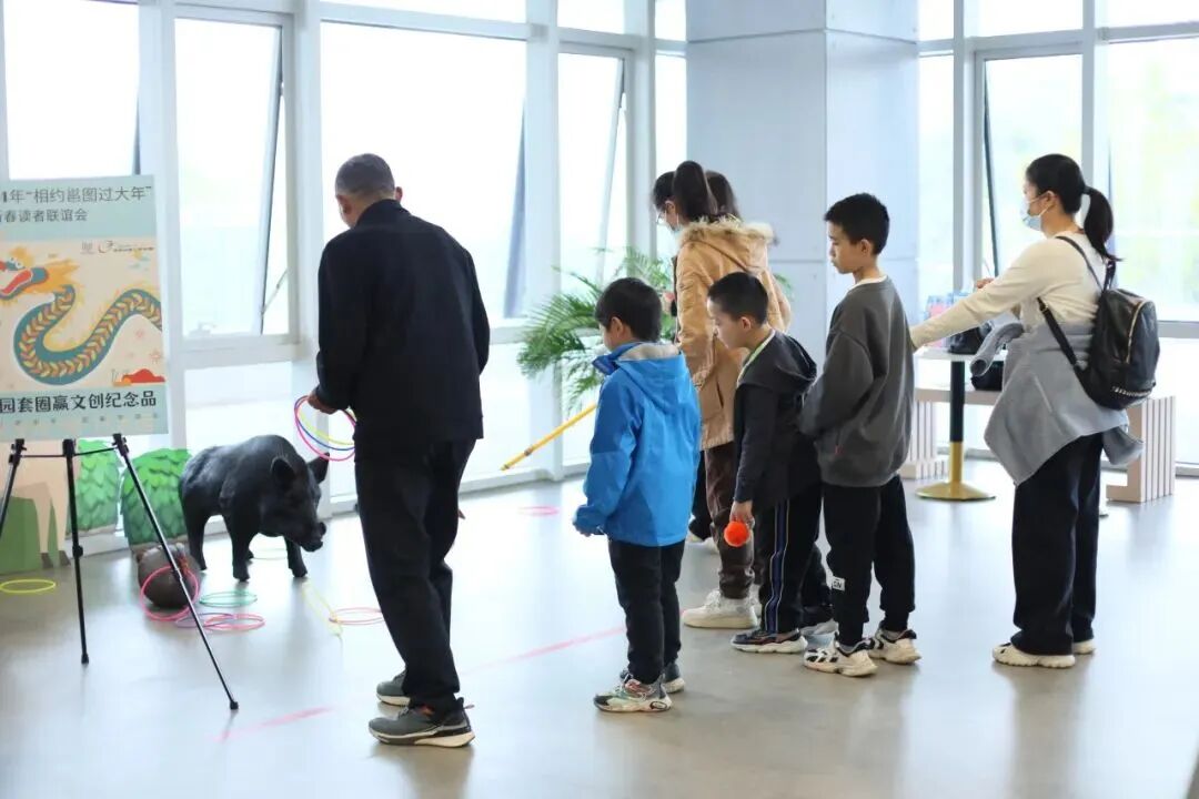 2月24日(周六)10:00-11:30,在南宁市图书馆一楼城市客厅市民朋友到现场领取抛圈,将手中的“游龙圈”抛出套中小猪等动物模型即可获得精美文创纪念品一份。