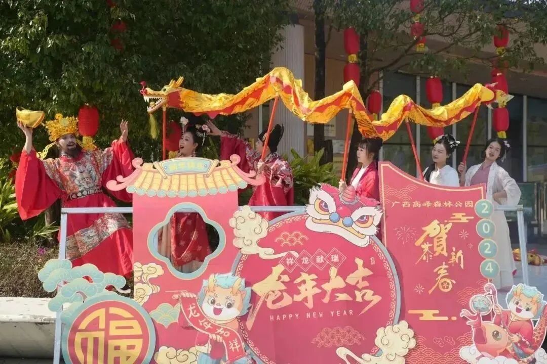 2月24日,南宁花花大世界景区举办2024“花花大世界 浪漫龙龘龘”新春旅游季活动,开展“沃力量—音乐烟花盛典”、大型舞龙舞狮、千人汉服—巡游贺新春等活动,开设非遗市集和美食市集、大型花卉展、沃柑主题产品展示和品鉴区。